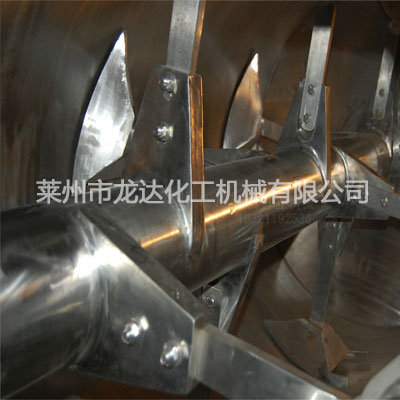犁刀混合機由圓筒體、傳動機構、犁刀、飛刀四部組成;工作時,犁刀做圓周運動,物料被犁刀刀面分流成兩個方向形成雙向物料流,與兩側犁刀分流過來的物料相互交叉形成對流,當物料流經高速飛刀時又被高速飛刀葉片剪切和拋灑,從而在較短時間內達到均勻混合。本機的混合精度高,混合時不產生離析,尤其對于容易團聚的物料,可以起到解聚和打散的作用。